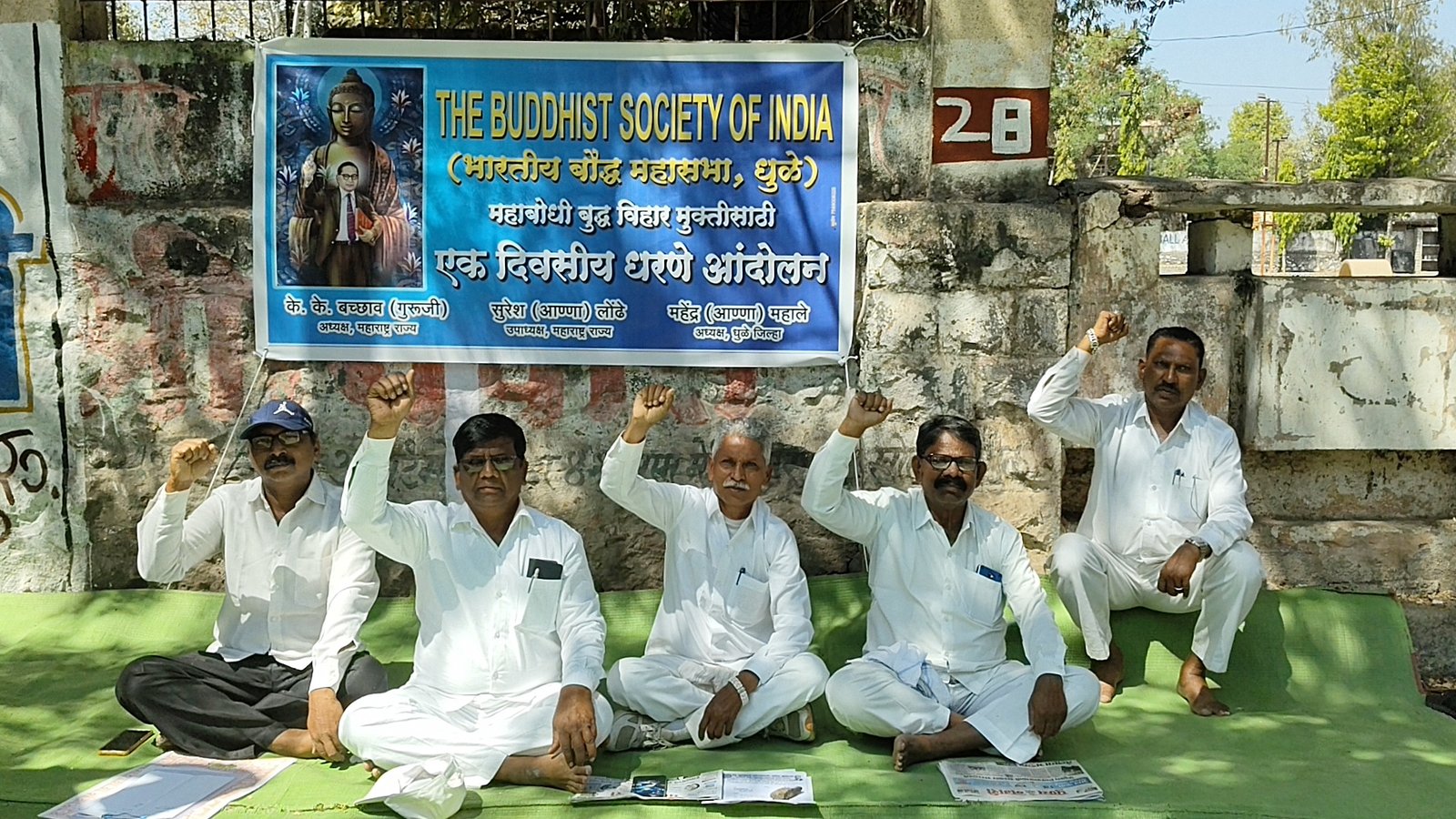 धुळे: बिहारमधील गया येथील जागतिक वारसा असलेले ‘महाबोधी बुद्ध विहार’ हे पूर्णतः बौद्ध अनुयायांच्या ताब्यात देण्यात यावे, या प्रमुख मागणीसाठी दि बुद्धिस्ट सोसायटी ऑफ इंडिया (भारतीय बौद्ध महासभा), जिल्हा शाखा धुळे यांच्या वतीने आज जिल्हाधिकारी कार्यालयासमोर एक दिवसीय धरणे आंदोलन करण्यात आले. यावेळी जिल्हाधिकाऱ्यांना आपल्या मागण्यांचे सविस्तर निवेदन सादर करण्यात आले.